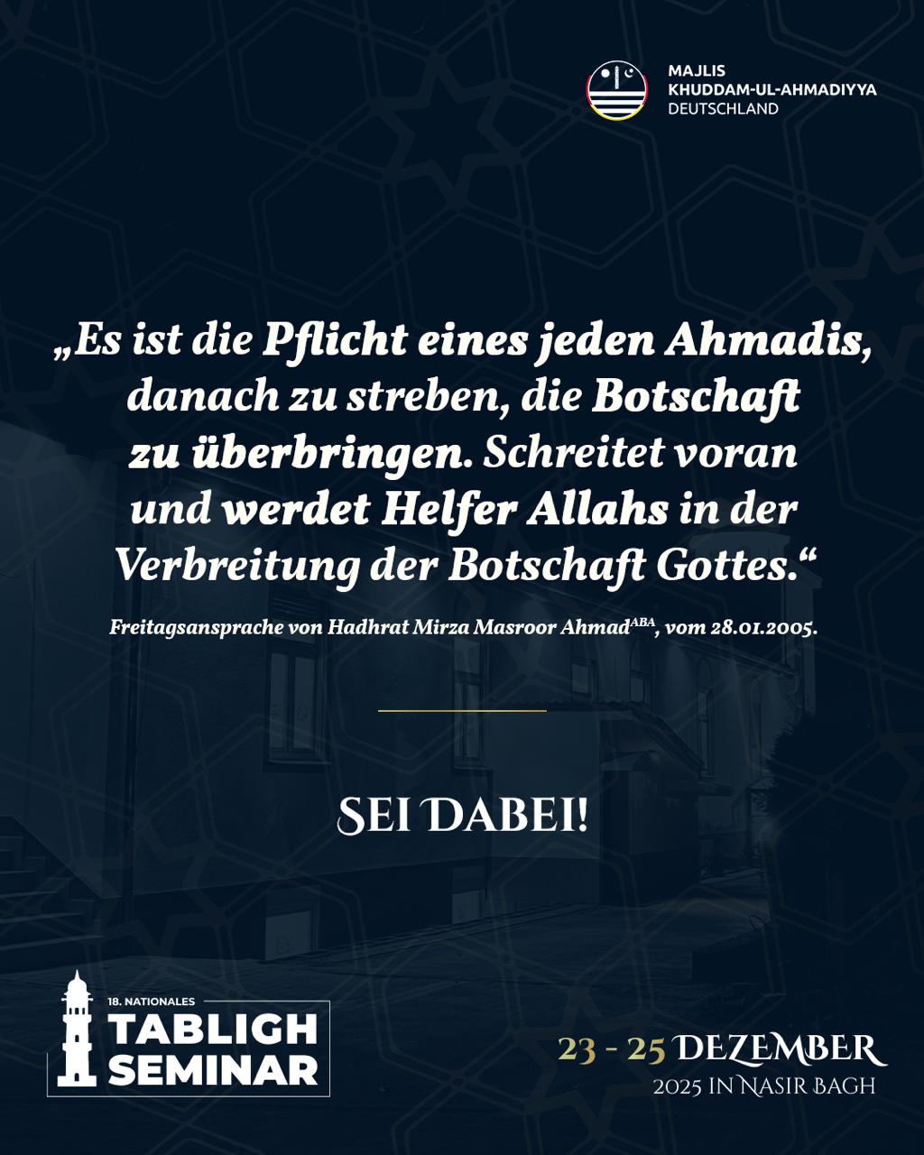 Das Nationales Tabligh Seminar 2025 beginnt am 23.12.2025.